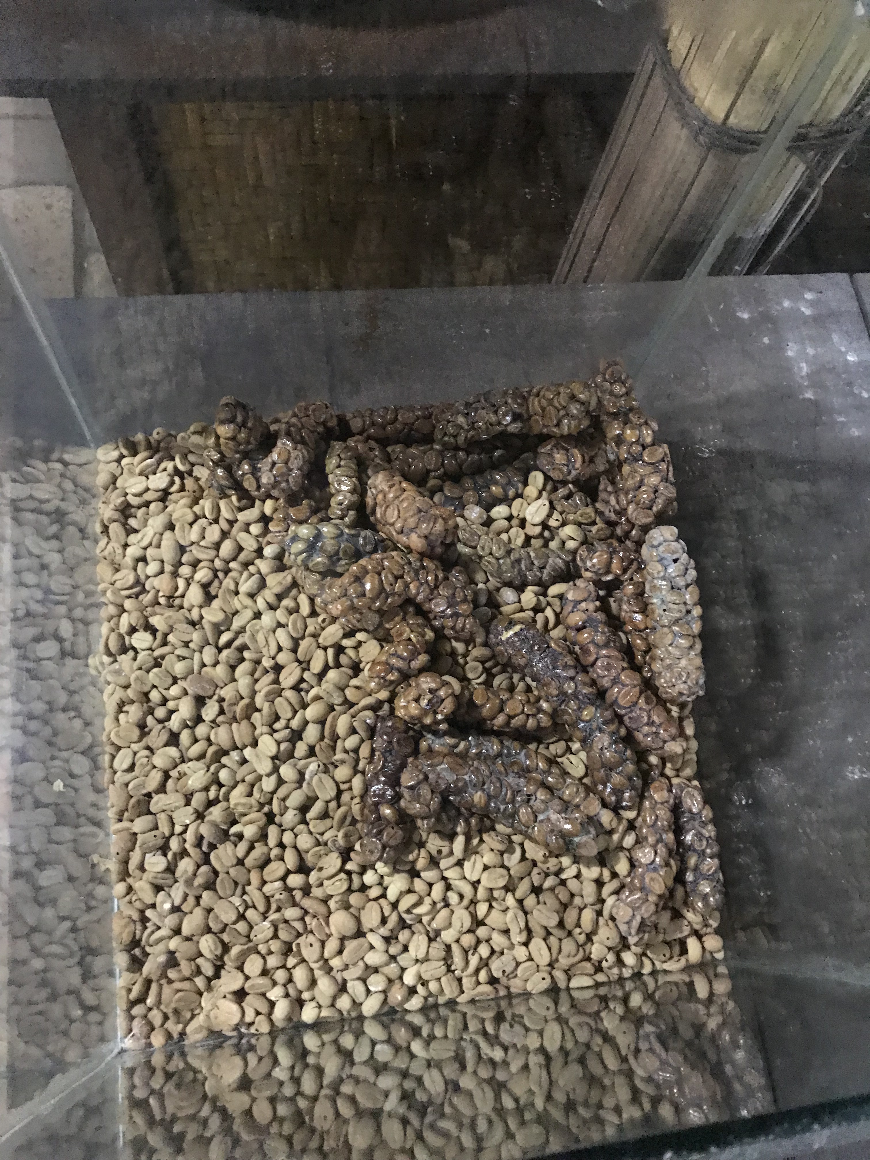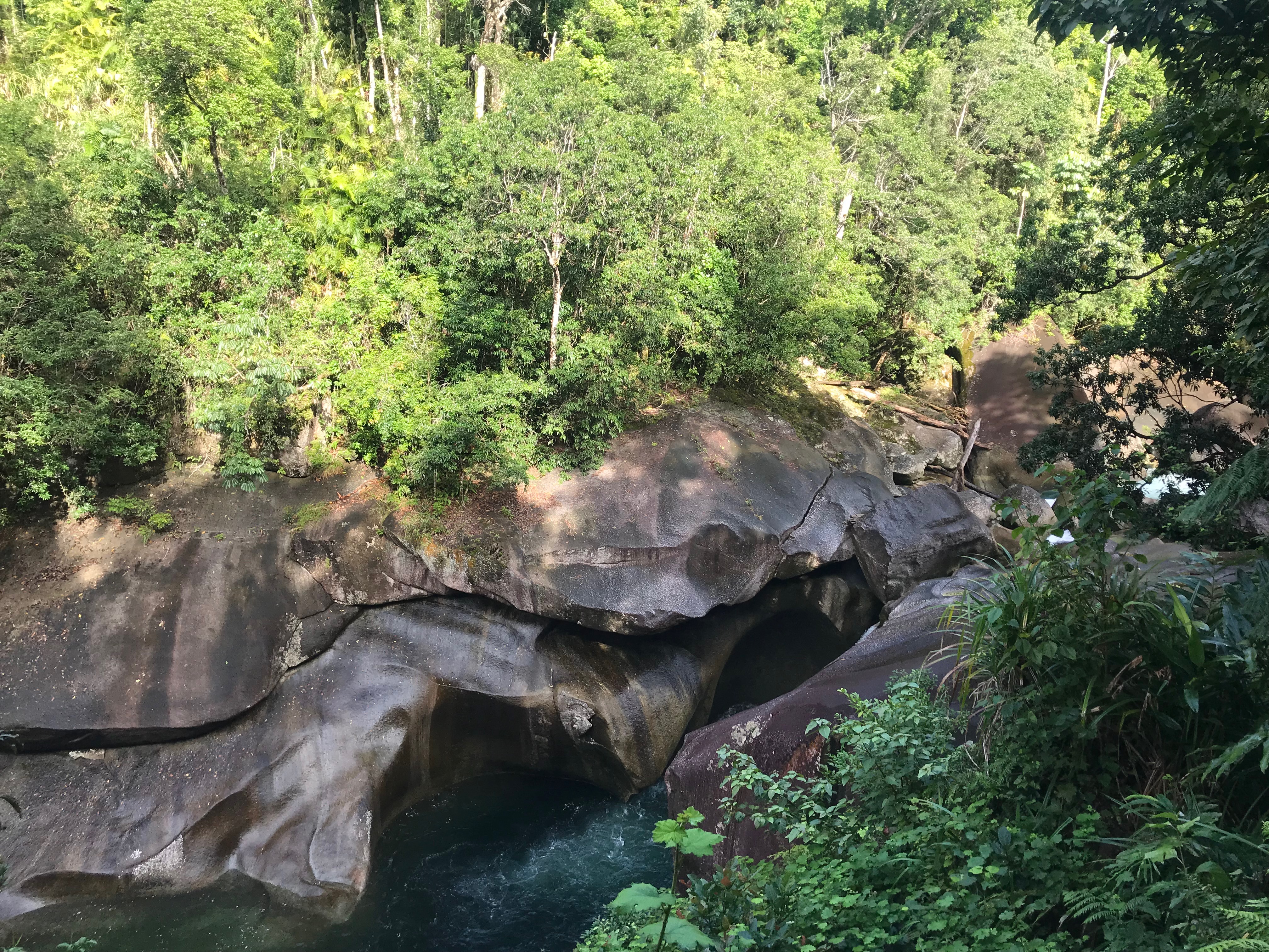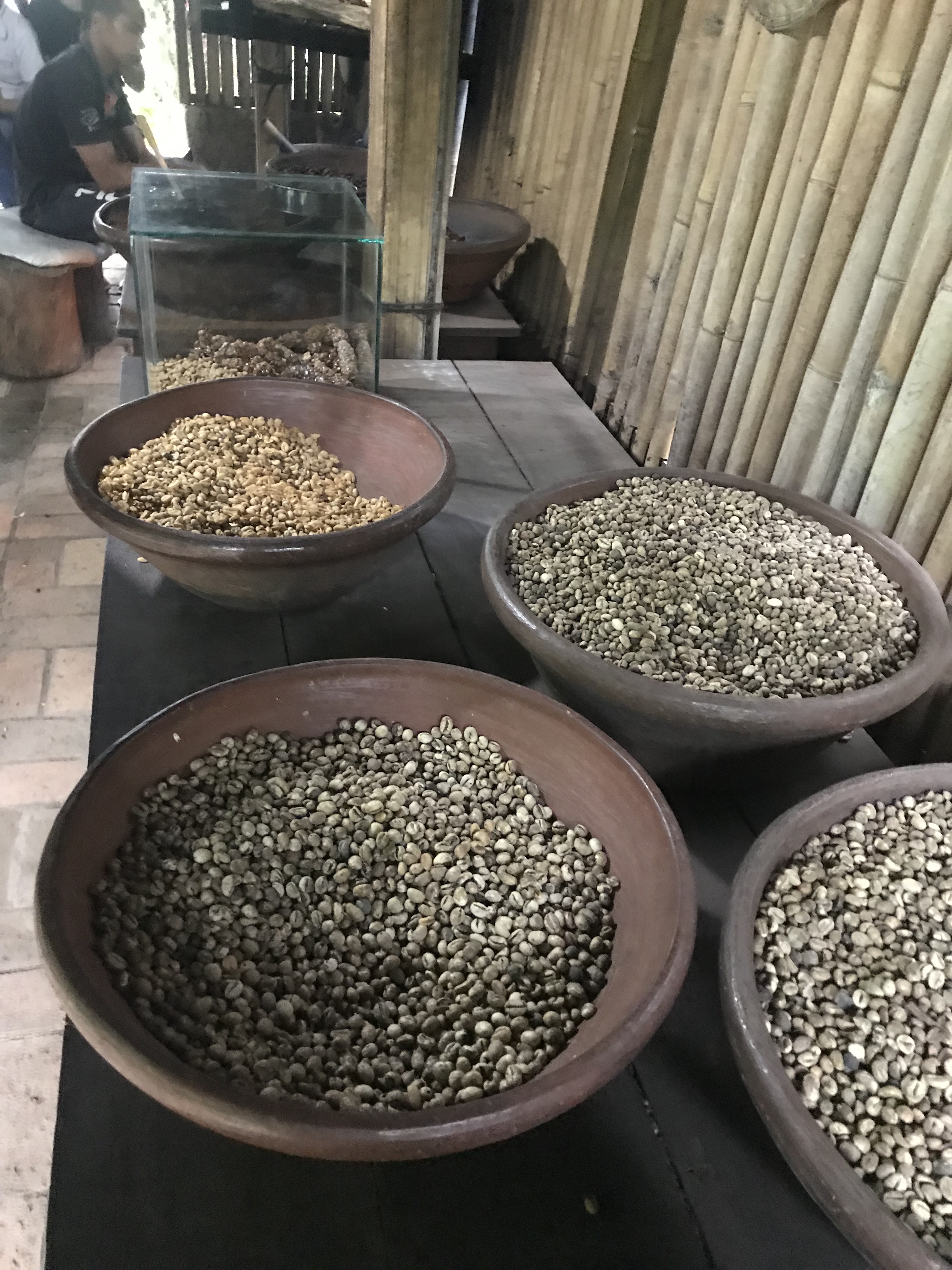 After the quick lunch stop, we moved on to a waterfall. Now, this was a hike to get down to as we arrived at the top and there were many stairs to get down to the bottom. Once we got to the bottom we then had to walk a bit through streams but it was very cool and cavelike. Once we arrived the waterfall wasn’t much of a swimming hike more of a stand under and shower waterfall. I did manage to go in it and then on the way back there was a boulder you could climb and it provided very pretty views both from the bottom and the top. As we hike back up the stairs from the waterfall I could feel a bit of tiredness setting in but it was my lucky day as we were heading to a coffee Plantation next!