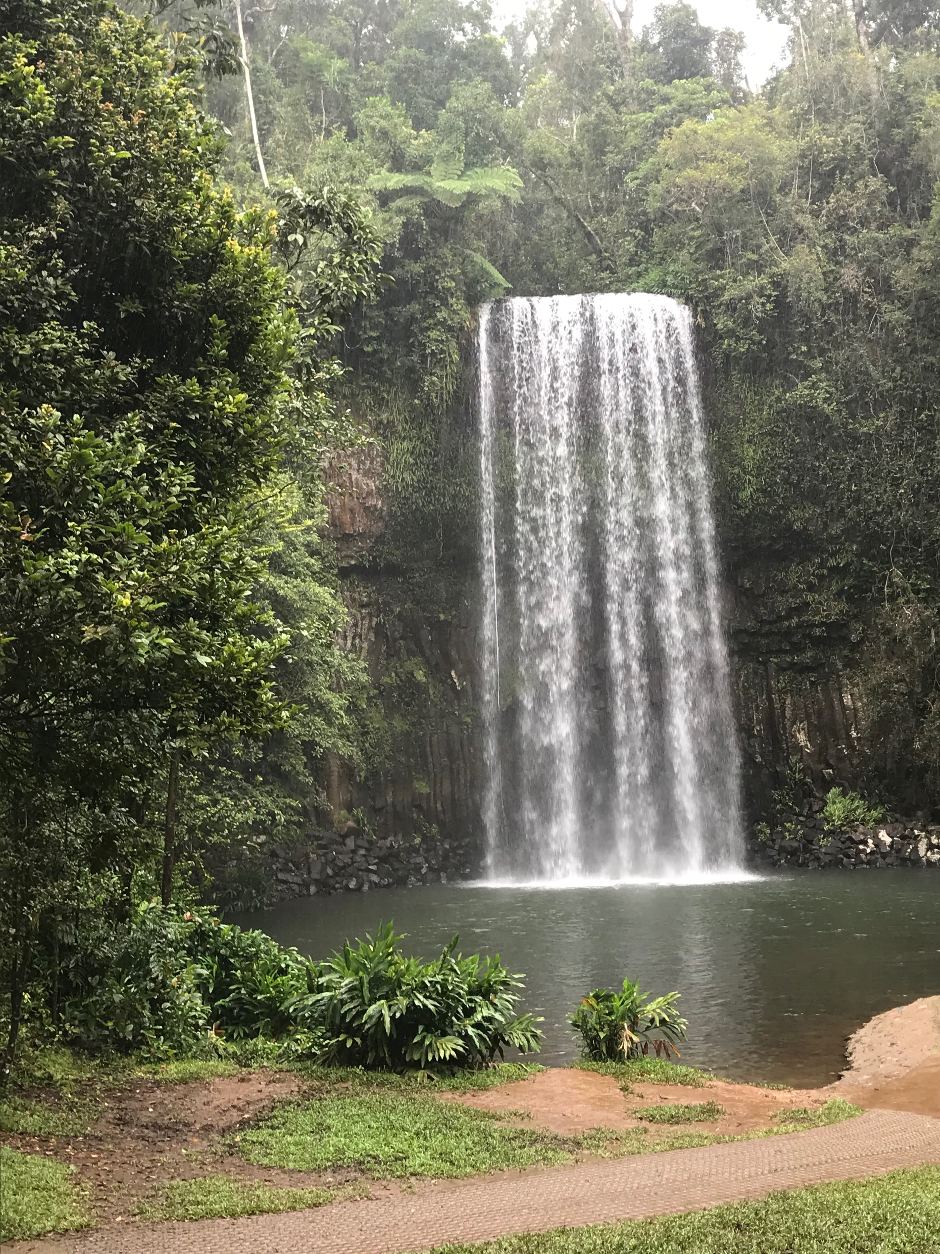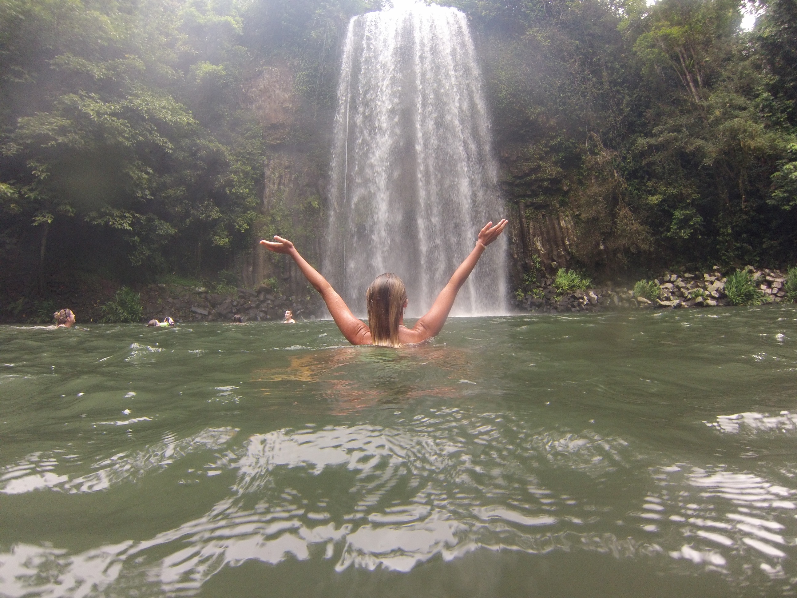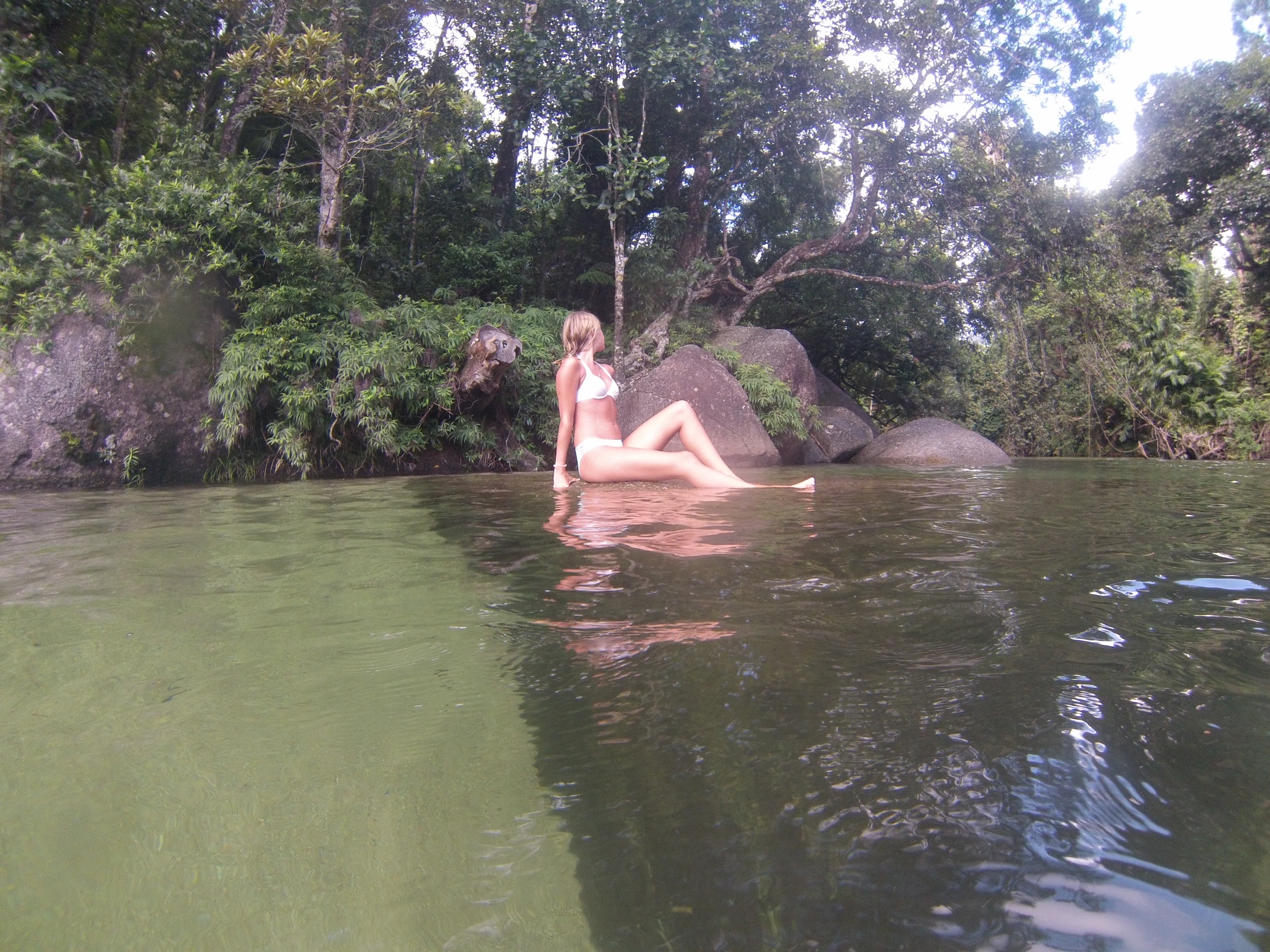 After the quick lunch stop, we moved on to a waterfall. Now, this was a hike to get down to as we arrived at the top and there were many stairs to get down to the bottom. Once we got to the bottom we then had to walk a bit through streams but it was very cool and cavelike. Once we arrived the waterfall wasn’t much of a swimming hike more of a stand under and shower waterfall. I did manage to go in it and then on the way back there was a boulder you could climb and it provided very pretty views both from the bottom and the top. As we hike back up the stairs from the waterfall I could feel a bit of tiredness setting in but it was my lucky day as we were heading to a coffee Plantation next!